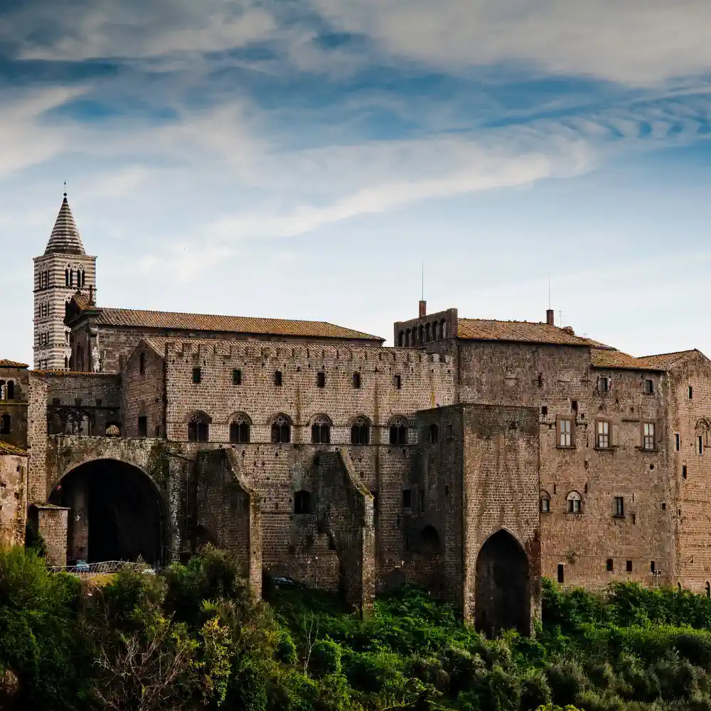 The highlight of your journey will be the arrival at Viterbo, a medieval gem nestled in the Lazio region. As you disembark, you'll be greeted by the grand Porta Fiorentina, a monumental gate built in the 12th century. This imposing structure serves as a gateway to Viterbo's rich and storied past. Make sure to visit the Cathedral of San Lorenzo, a marvel of Romanesque architecture, and the Papal Palace, where medieval popes once resided.